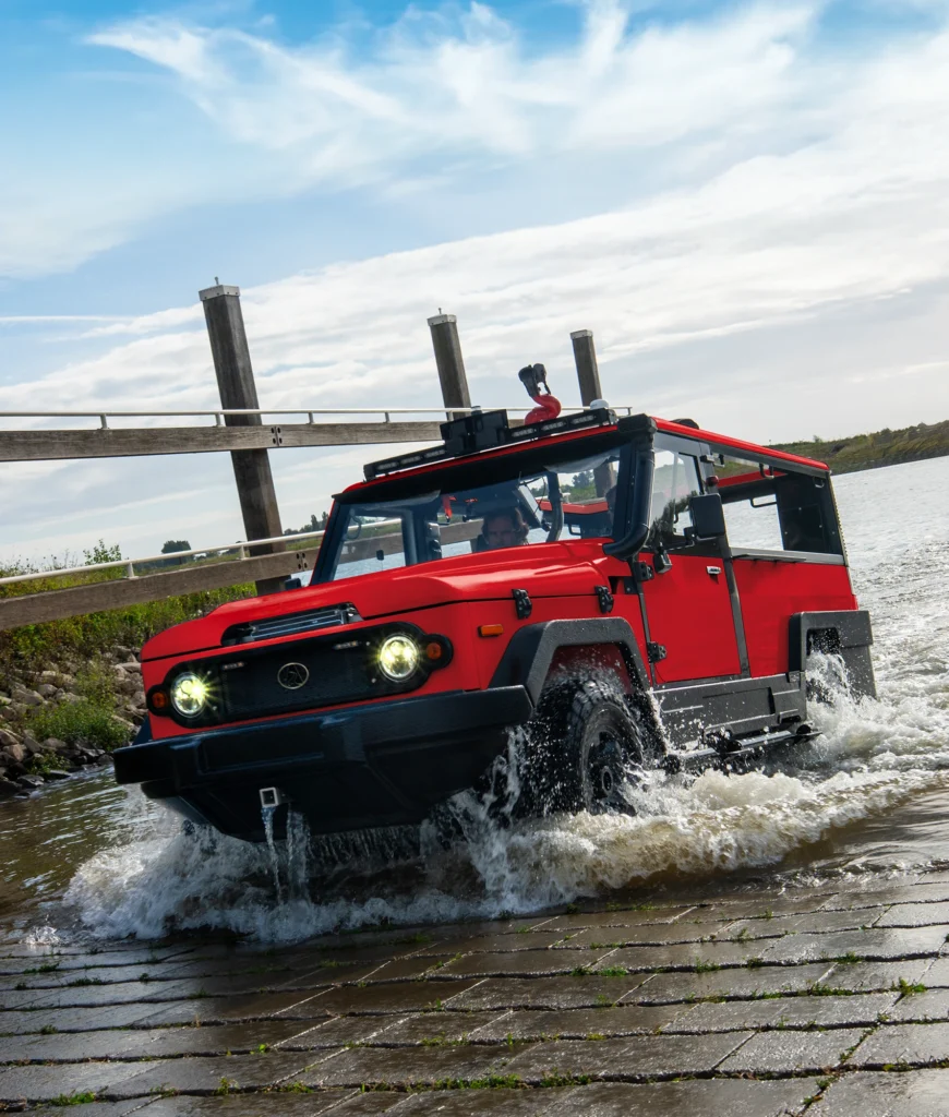 Amphicruiser Rescue quickly enters and exits the water without stopping or interrupting the mission in hand. It keeps emergency personnel safe, as warm and as dry as possible, out of polluted floodwaters. And because of its high off-road capability, Amphicruiser Rescue is able to traverse damaged roads and to leave pavemented areas when necessary.